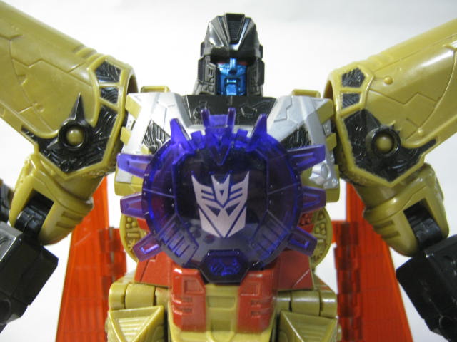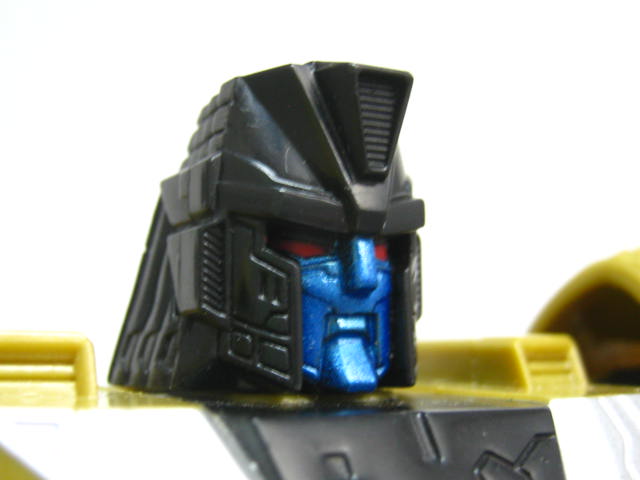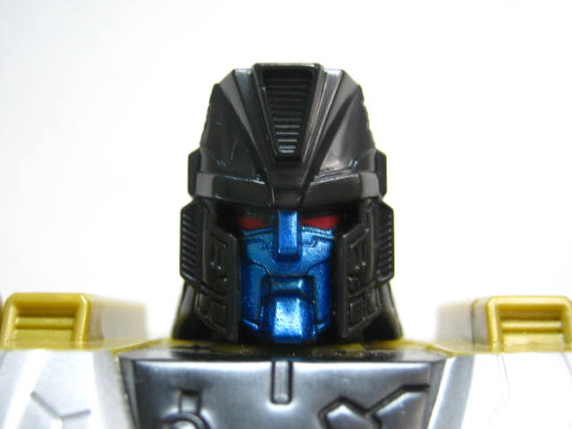 フェイスアップ黒い頭部に赤い目、メタリックブルーのヒューマンフェイスというどこちょなくメタルスメガトロン顔っぽいカラー。