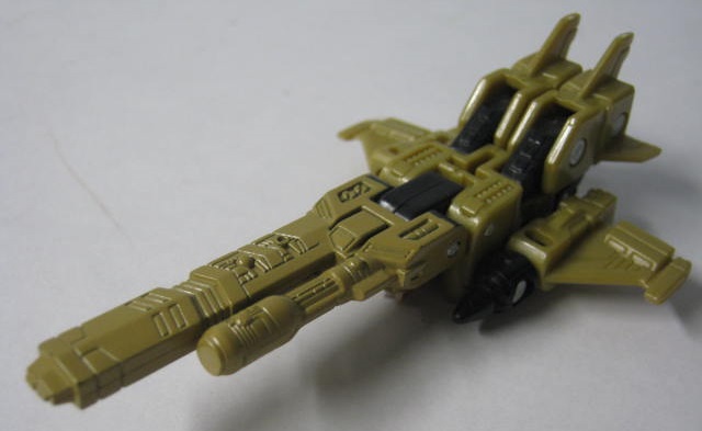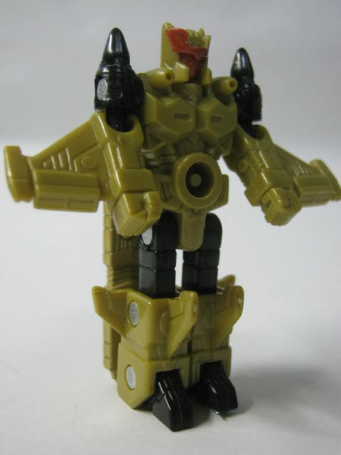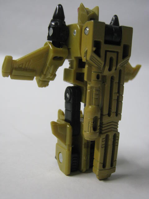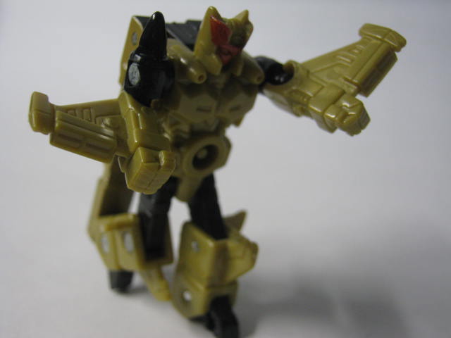 手足が可動。可動箇所はミニコン(マイクロン)にしては珍しく多く肘、膝まで可動。しかし背中の機首が邪魔してあんまりバランスは取れない。