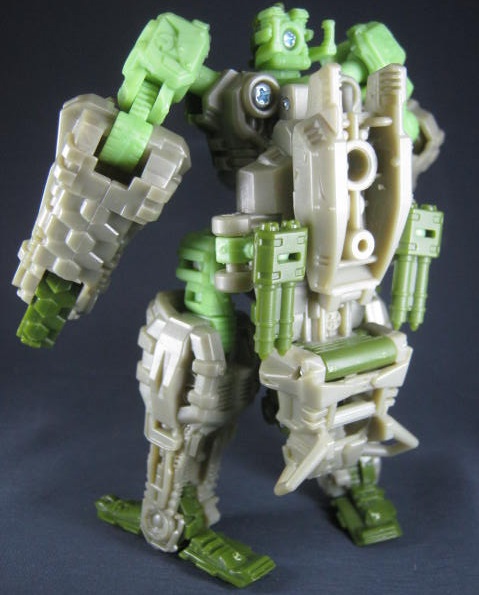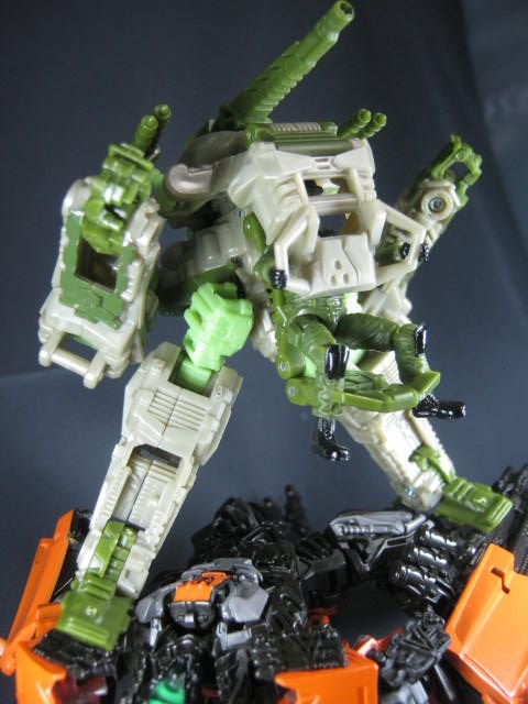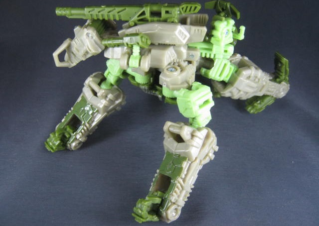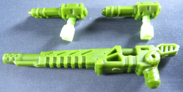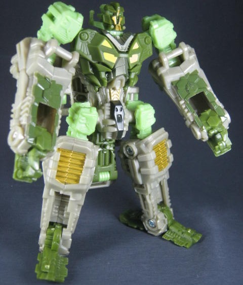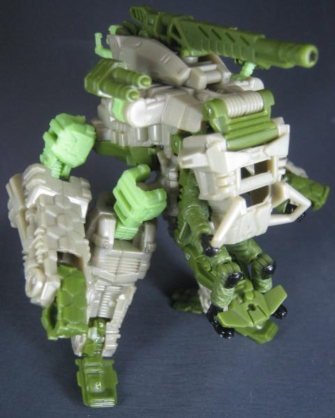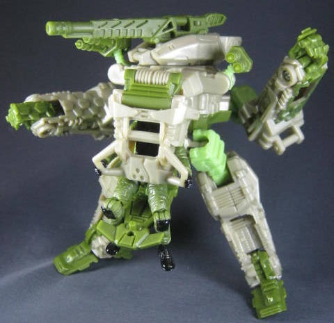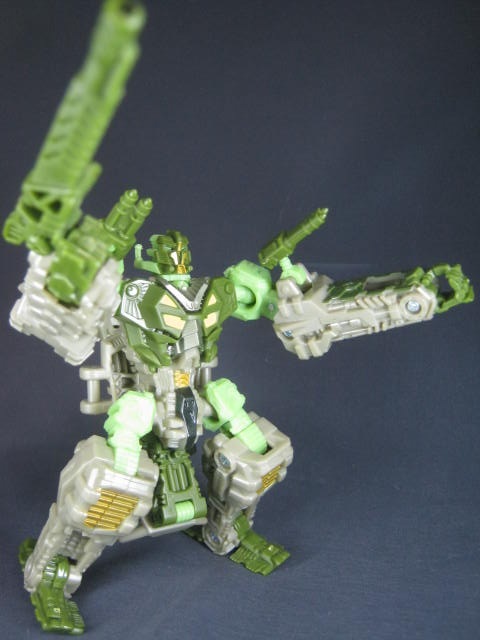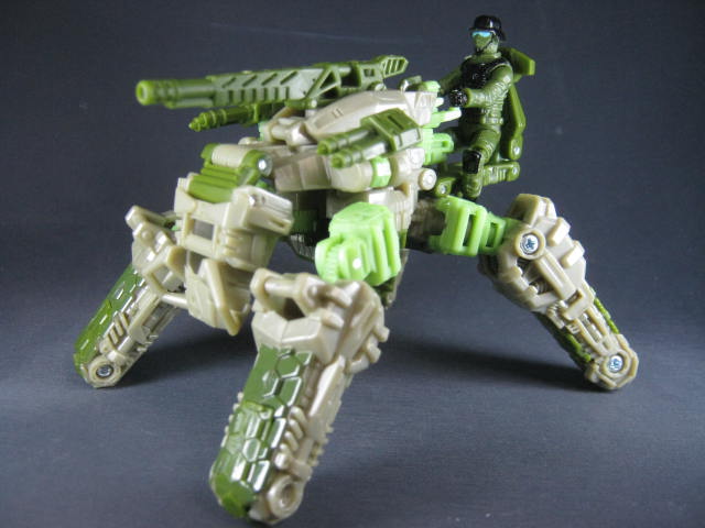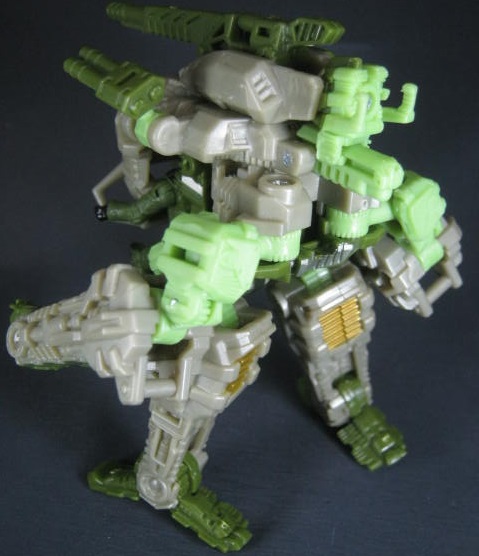 サンダーヘッド&タングステン少佐のリカラーで、そちらはグレーとオレンジのカラーリングでした。個人的にモスグリーンの兵器に変形するTFが好きなのでコッチのクロスヘアーズの方が好き。