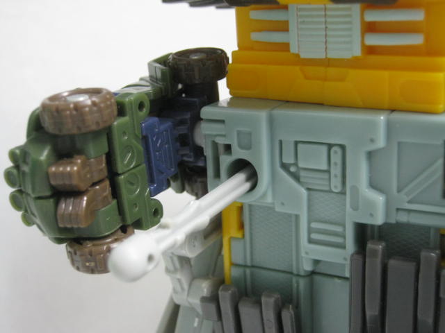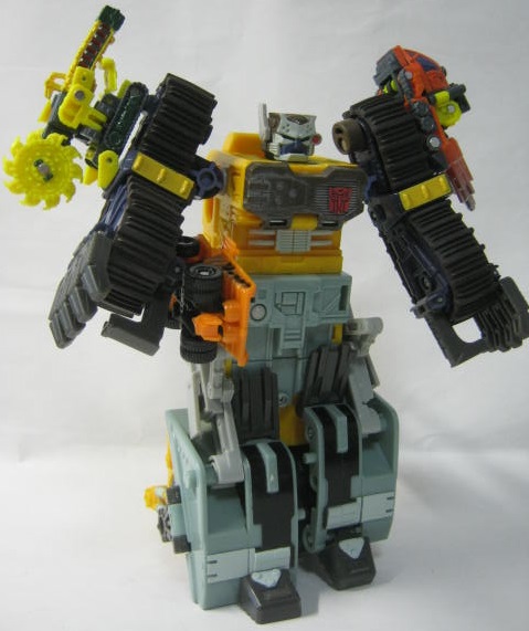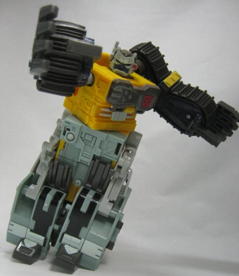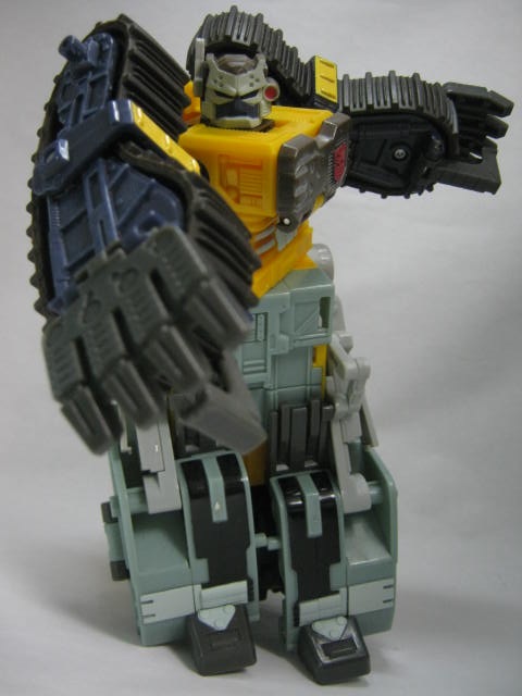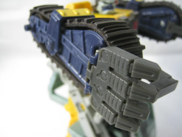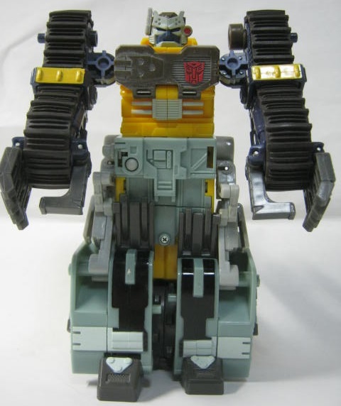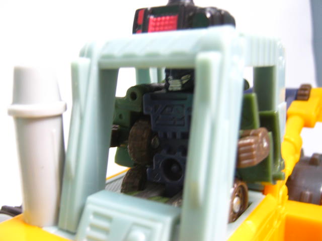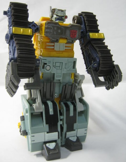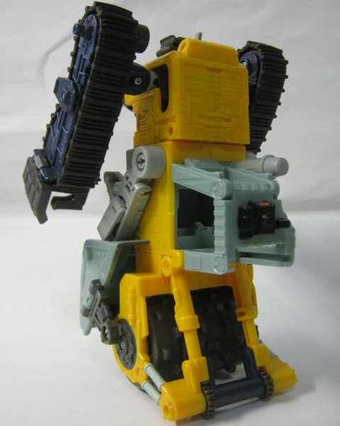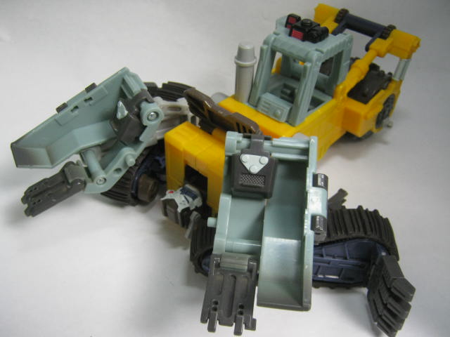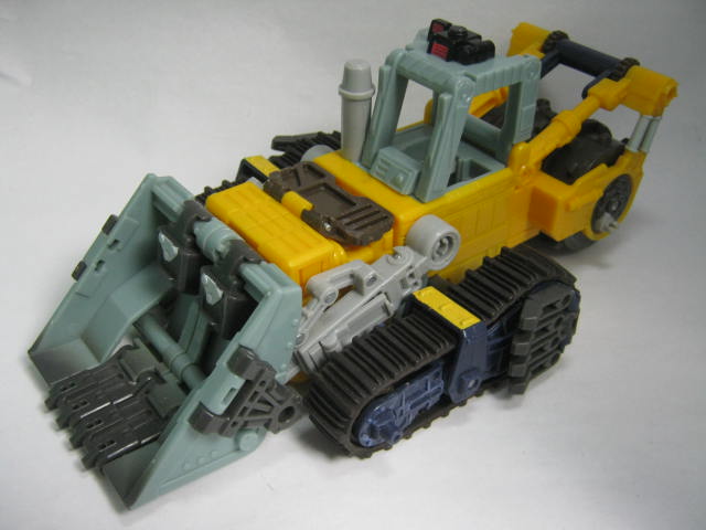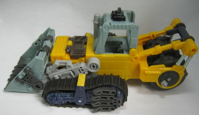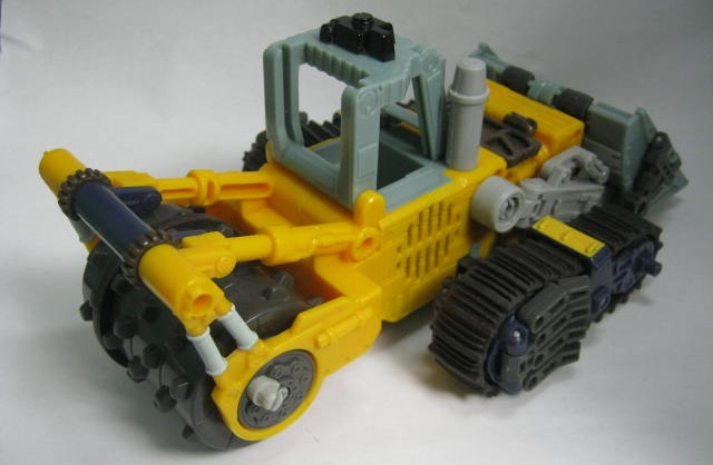 ビークルモード後部にローラーを備えた大型ブルドーザーに変形。TF玩具にしては珍しくキャタピラ部分がダミーでは無く、実際に柔軟樹脂を使ったモノになっています。