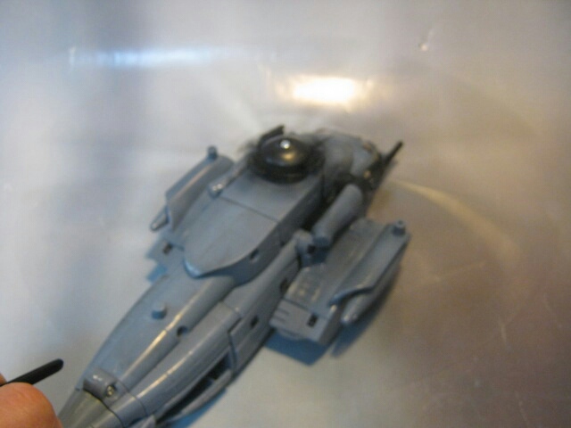 汚し塗装がガッツリされていると言うか汚し塗装しかされてません。それ以外の塗装は無し。後ろに光を当てれば集光ギミックでボンヤリ発光します。