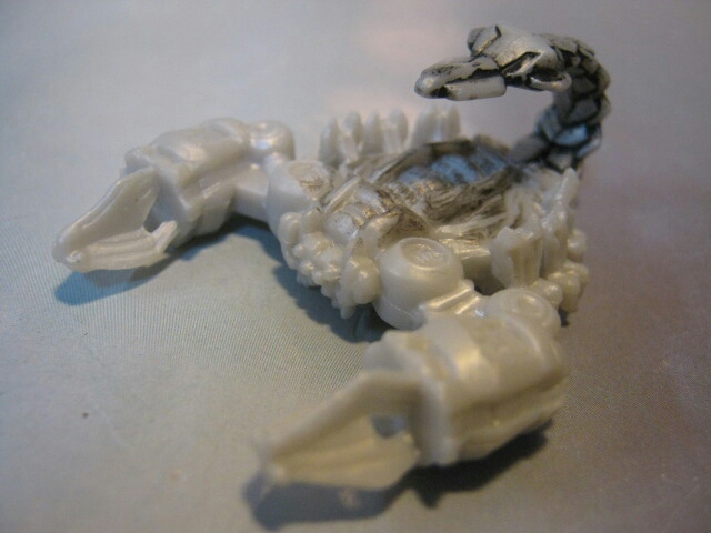 付属のスコルポノック。グレー一色で汚し塗装がされています。背中の尾にはスプリングが仕込まれており、手前に倒しても元に戻ります。非変形ですが劇中では変形しないしノープロブレム。