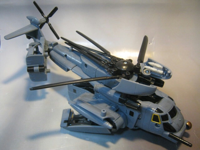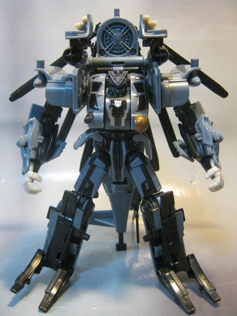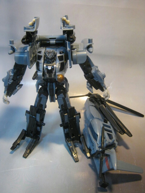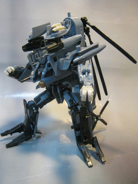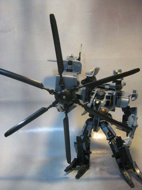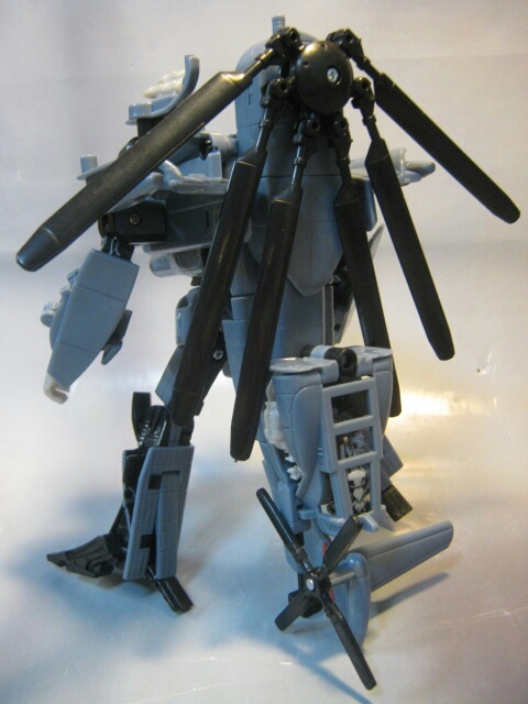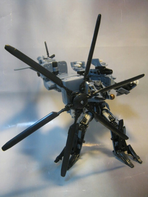 映画で最初に変形した際、アニメとは別物なそのクオリティに思わずゾッとした記憶があります。ブラックアウトの変形シーンでコッチ側(TFファン)に堕ちた人は多いんじゃ無いでしょうかね。ちゃんとメインローターを後方に畳んだり肩周りを回転させたりと劇中に似た変形が出来るのが嬉しい所。