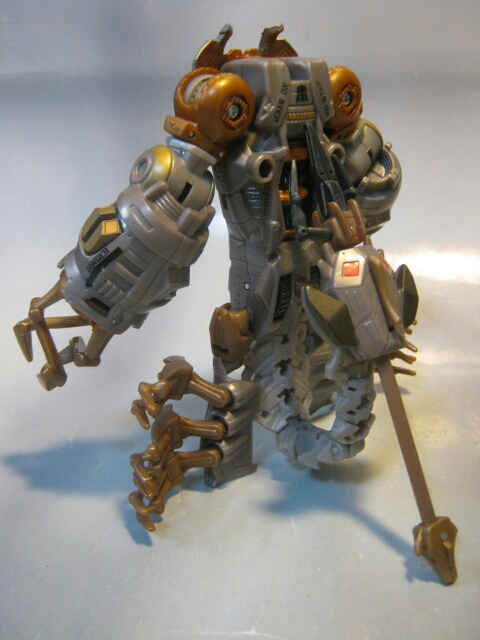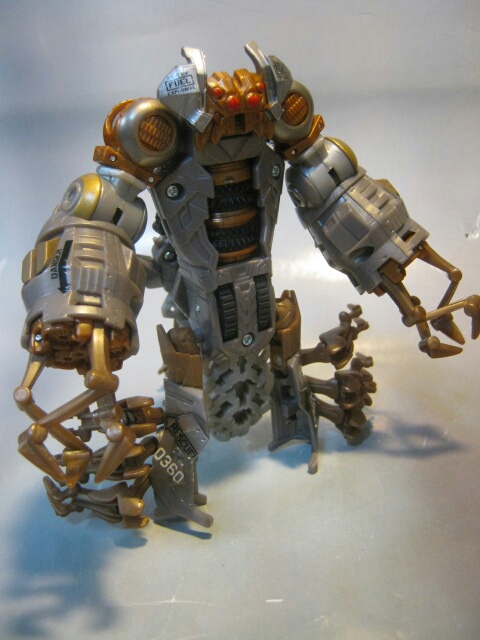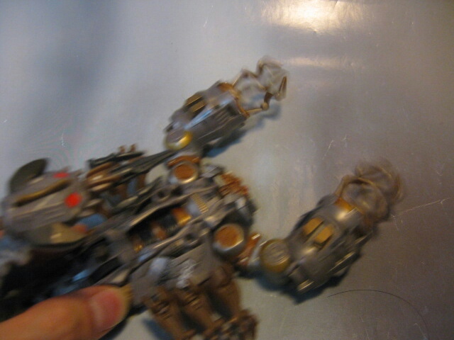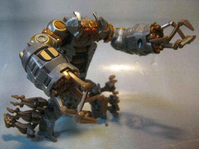 銀をベースに銅の脚やツメと、あまり見ないカラーリング。メカっぽさが出てますね。腕のドリルクローは三枚で出来ておりハサミの様な形状で無く、異質な感じがして面白い!数字やアルファベットのマーキングがされていますが何故この様な文字が係れているかは不明。