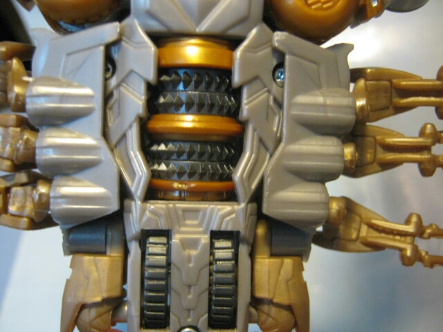 腹にタイヤがあり、床に付けて走らせると腕のドリルクロー、背中のエンジンの様なモノが連動して回転。劇中でもギャルギャル回転させながら走っていた姿が印象的でしたね。