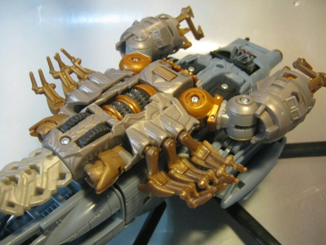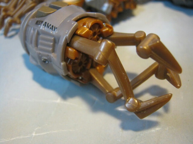腕のドリルクロー。三枚のツメが捻れ合う様に出来ているのが特徴。開く事も出来ますが、やたら固くて破損が怖いので止めときました。