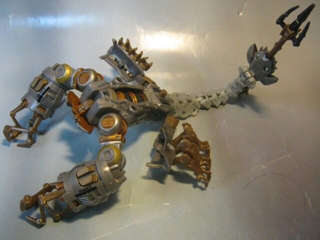 ポージング。腕の関節にはギアが仕込まれているのでどんなポーズでも回転ギミックは発動するのが素晴らしい。脚は全て個別に可動してくれます。尾の付け根と先端は捻る事も出来ます。