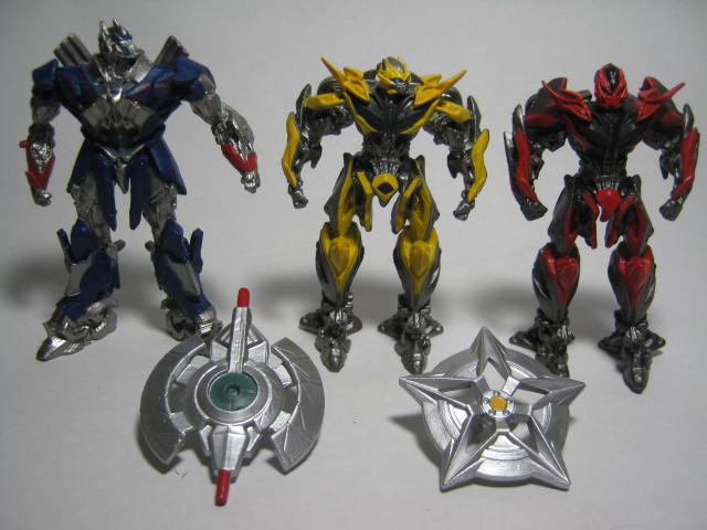 オプティマス、バンブルビー、スティンガーの非変形フィギュアと武器のセットです。スティンガーが付属し、ロストエイジ版のデザインと言うのもあって、ザ・ライドの関連商品と言うよりもロストエイジのフィギュアセットといった感じで、特にユニバーサルスタジオ限定である必要性がほぼ無いという、変わった商品。また、最後の騎士王に合わせたメンバーの似たようなフィギュアセットが同じくユニバーサルスタジオ限定で発売している様です。