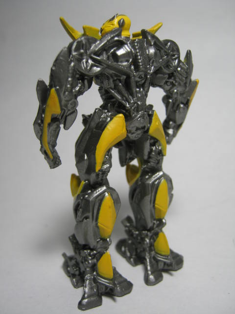 スティンガー本命、スティンガー。正直、スティンガーが付属するから買った様なモノです。数少ないスティンガーの劇中デザインでの立体化。他の2体と違って首に変な角度が付いていないので自然です。ちなみにデザイン、ポーズは殆どバンブルビーと同じですが、所々造型が違って見えるのでもしかしたら新規で作り起しているかも知れません。その割には肩のホイールがビーと同じデザインのままだったりと中途半端ではありますが。