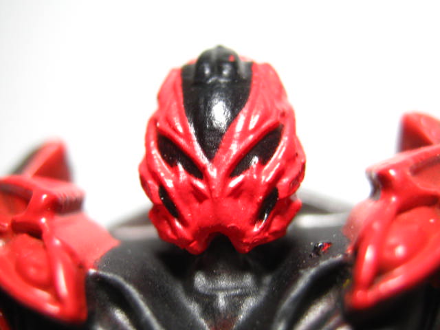 フェイスアップ赤の塗料が厚いのか、ややモールドが潰れ気味。劇中と違い、目は黒。