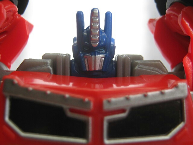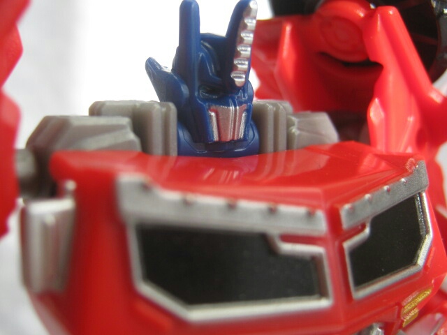 このオプティマスの最大のポイントは顔!他に発売されたヴォイジャークラス等のハンマーオプティマスは何故か全てマスクオフ仕様。このサイバーバース版のみ唯一無二のマスクオン仕様となっています。マスクオフも嫌いでは無いのですが、やはりオプティマスといったらマスクオンの印象が強く、この玩具が好きな最大の理由だったりします。