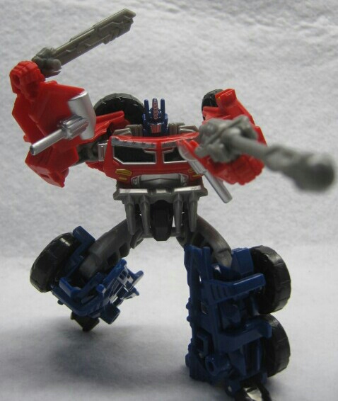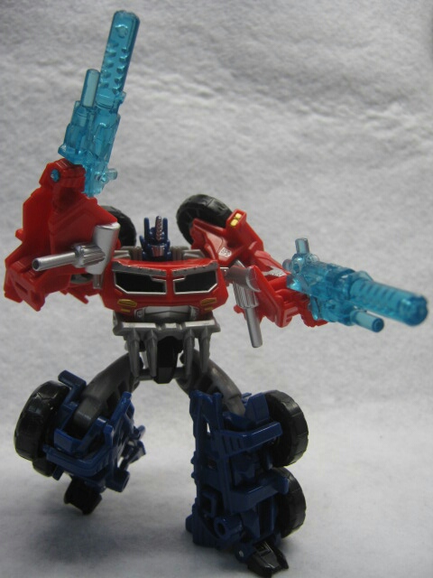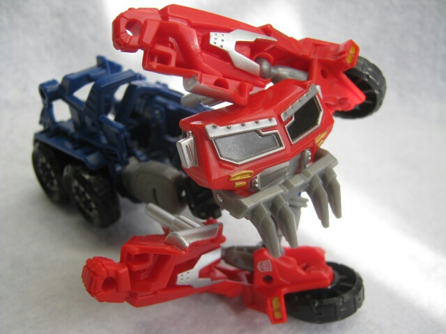 プライム本編ラストで仲間を逃がした後、基地ごと破壊されてしまい瀕死の重症を負ってしまったオプティマス。国内放送ではここで終了してしまいその後の経緯は謎のままGo!でハンターオプティマスとして登場。プレダコンと戦います。