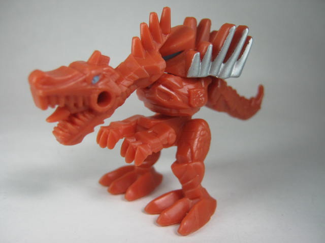 ロストエイジに登場したダイノボットのメンバー。デラックスクラス版の玩具の変形パターンを簡略化させた様な変形をします。そのおかげもあってか見た目はほぼ完璧。強いて言うなら右手が恐竜の顔のままな位でしょうか。変形機構のおかげで両腕以外にも頭部と腰が動くという当シリーズ屈指の可動を持つすげーヤツ。