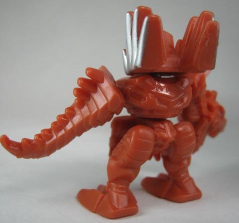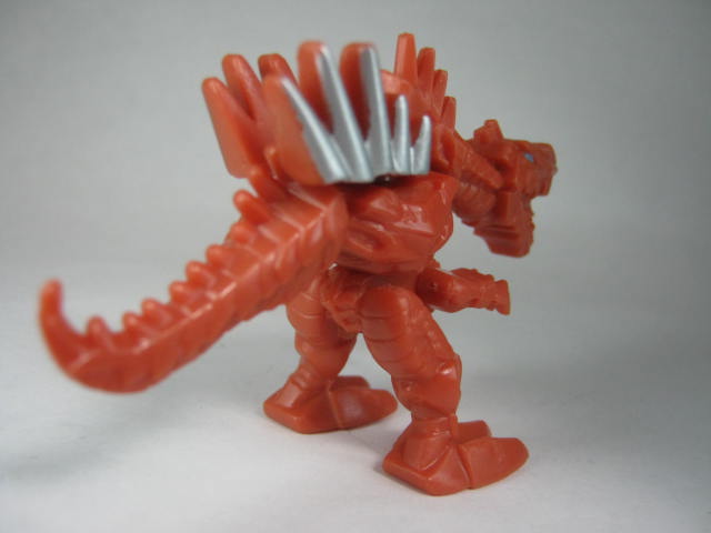 オレンジのスピノサウルスに変形。3弾のスラッグが劇中を意識したカラーだったのに対してコチラは玩具版を意識したカラー。やや腰周りが不自然ですが、良く出来ていると思います。一応、背びれも上手く3枚再現していますし。しっぽがピンと伸びているのでは無く、少し反っているのに謎のこだわりを感じる。
