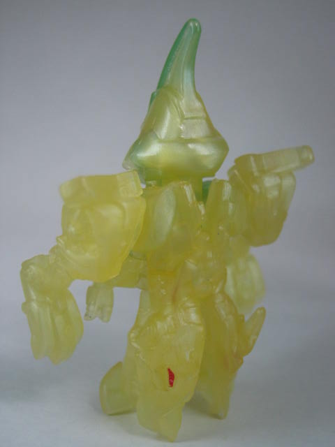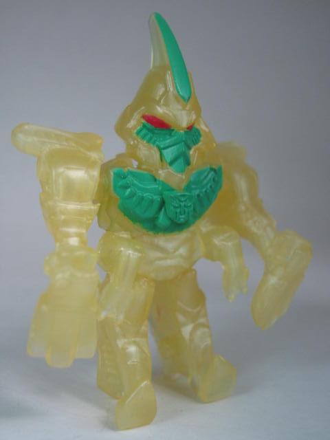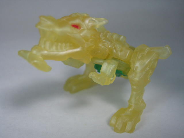 ダイノボットのリーダー。今回のカラー自体に特に深い意味は無いかと思われます。エメラルドグリーンの塗装もあってなんだか不思議な色。一昔前ならシャイニンググリムロックとか名付けられていたかも知れない。尻尾を頭部の角に見立てる変形がやはり面白い。小サイズでも工夫がされた傑作だと思っています。玩具カラー、ブラックカラーと来て劇中カラーやG1カラーでは無くクリアカラーを出す捻くれ感はハズブロらしいとも言える様な。