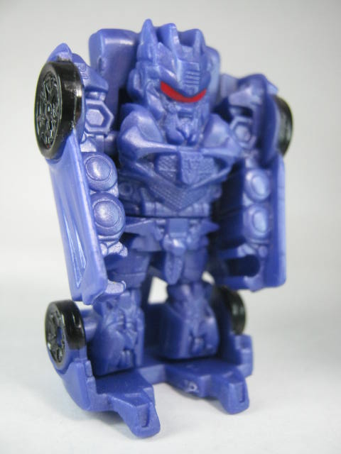 青いスポーツカーに変形。スピンオフビーのサイバートロン星で登場することを意識したラインナップでしょうか。いわゆるG1カラーといった所。1弾のモノと比べると窓の塗装が省略されています。サウンドウェーブに限った話では無いのですが、今弾は過去に出たバリエーションと比べて塗装が減っているというモノが多いのが残念です。一応、タイヤが全面塗られる様になったので一概には減ったと言い切れませんが・・・。