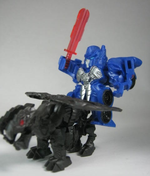 ドラゴンストームに乗るオプティマスもそれっぽく。今弾はスピンオフビーのキャラとリカラーばかりで新しく登場したキャラが少ないので、新しく再現出来るシーンはそう多くありません。