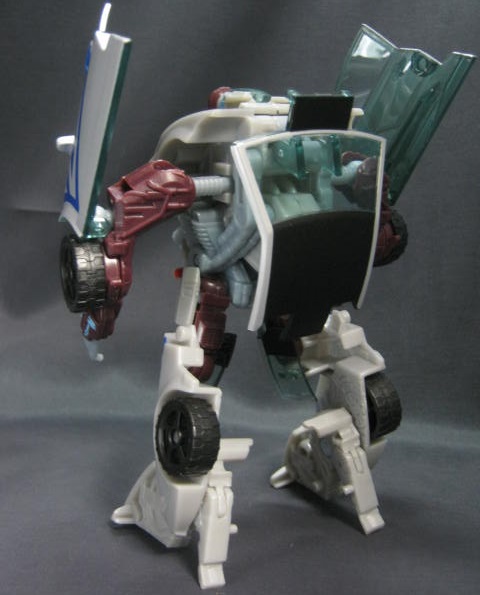 ロボットモード車から変形するTFとしてはスタンダードなパーツ配置なのに、どこかアンバランスな印象を受ける人型。