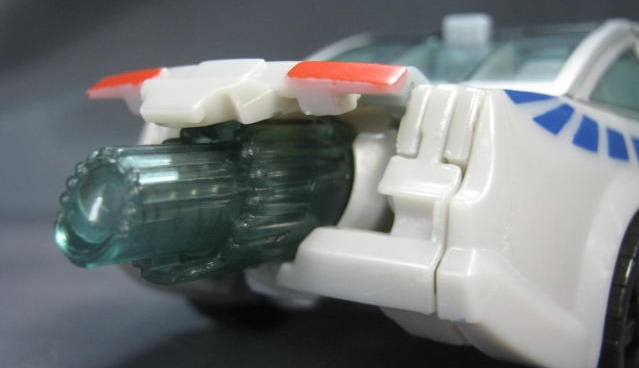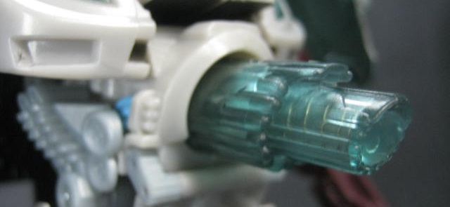 ギミックビークルモード同様にスイッチを押すと、胴体からキャノン砲が出現。暴発し易いのか、私のモノはしょっちゅうバシャバシャと展開します。