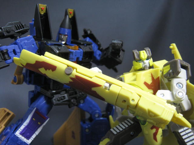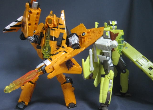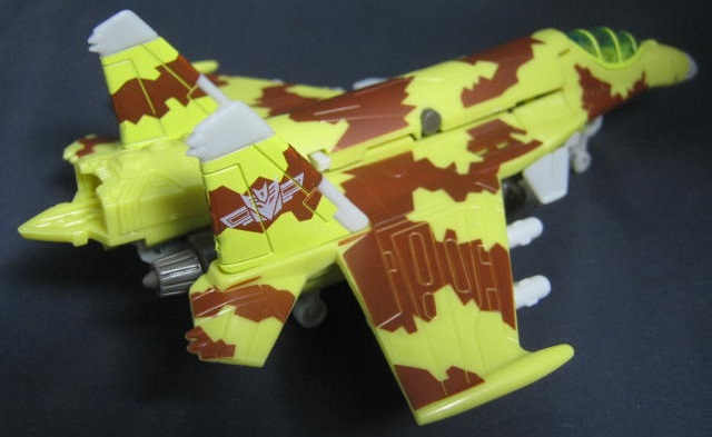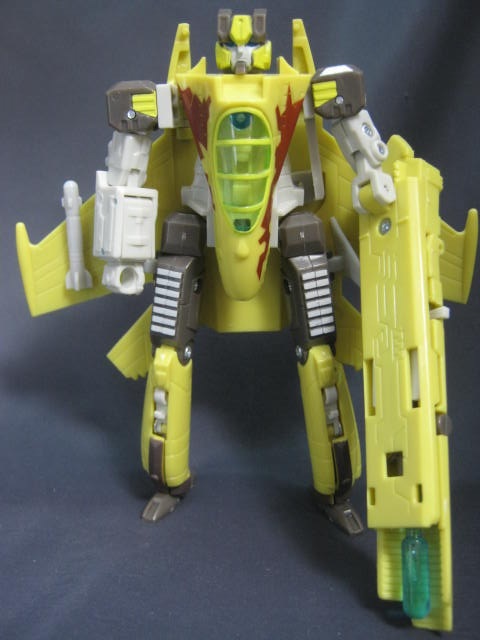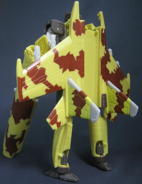 サイバートロン/ギャラクシーフォース型なので見た目に癖も無く、新型のモブジェットロンとしてジェネ系に混ぜてみても違和感なし。ショックウェーブの改造を受けて新兵器を装備したモブジェットロンとかそんな感じで遊ぼう。
