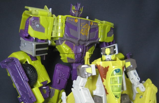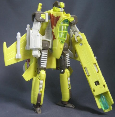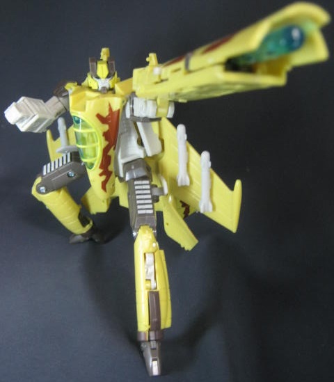 リベンジのNESTシリーズ期にランサックのリカラーで同じくダイブボムという複葉機に変形するディセプティコンの玩具が出ましたが、このダイブボムと同一人物。古代の戦士に憧れて同じ姿を手にしてみたという設定でした。