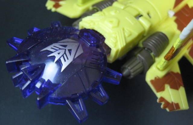元となったサンダークラッカー同様にG1ジェットロンをアレンジした形の頭部。それにしても塗装が汚い。ディセプティコンにしては珍しく、目はクリアブルー。後ろから光を当てれば集光ギミックでぼんやり光ります。