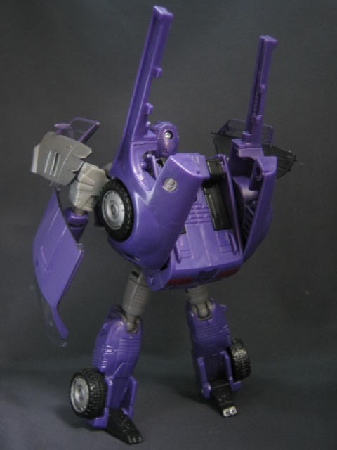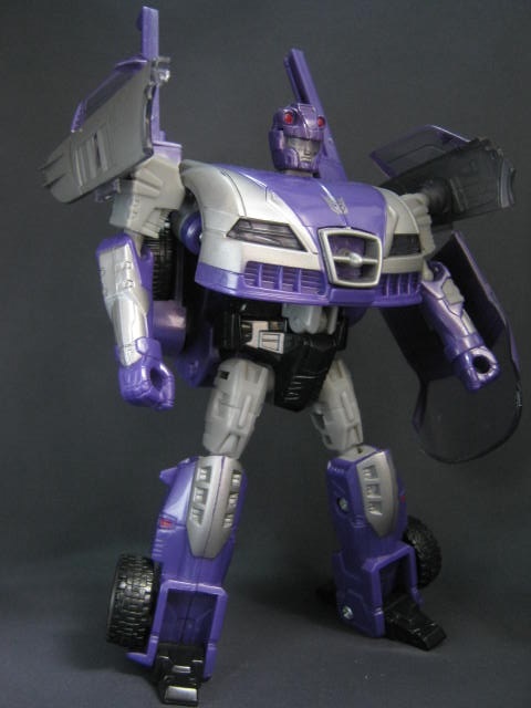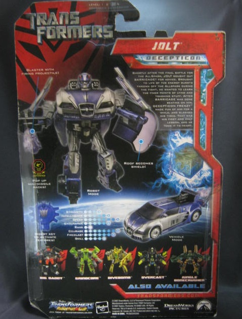ロードハガーがモチーフだと明言しています。ただし名称が使えなかったのか、同じく紫の車から変形するG2ジョルトを使用した模様。そのジョルトって名前は実写続編のリベンジで登場する無関係のオートボットに使われてしまいますが・・・。名前もビークルも後から登場したオートボットに被るとか居心地悪そうですね。