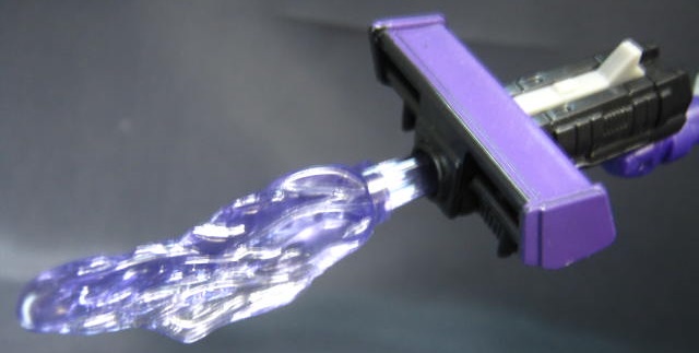 プラネットX型のリペイントでクリアパープルで成型。裏面にディセプティコンエンブレムがモールドされており、ぼんやり見えるのが特徴的なキーだったのに、今回はガッツリと表面にディセプティコンエンブレムがプリントされています。普通にディセプティコン用のキーのリペイントじゃダメだったんかね。