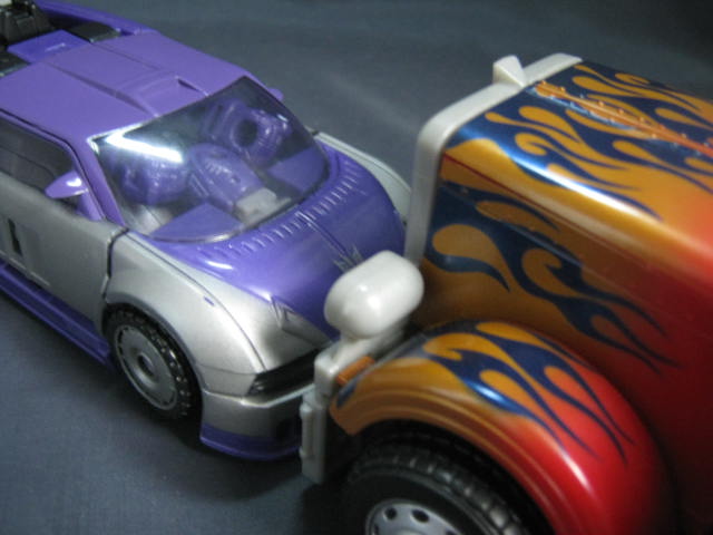 オプティマスに真正面から衝突。ロボットモードに一度も変形することなくビークルモードのまま、潰されて死んでしまいました。扱いがいくら何でもあんまり過ぎる・・・。