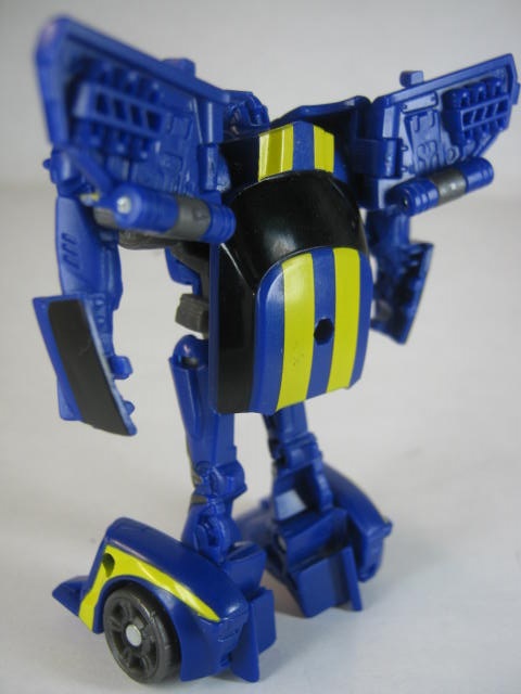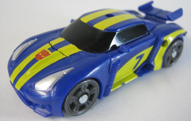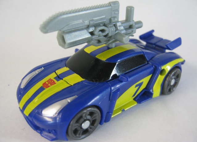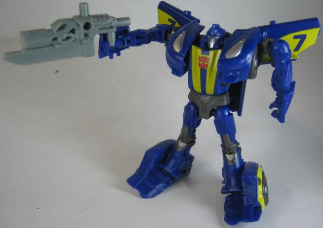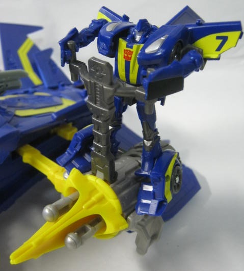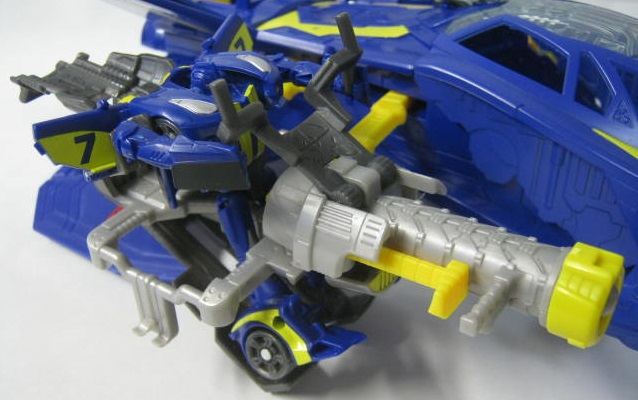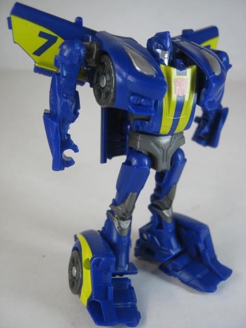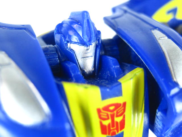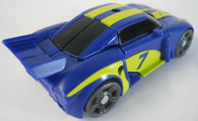 黄色いラインが似合う青いスポーツカーに変形。リージョンクラスで単品売りされたブレークダウンのリカラー。単品ではシーズン2登場時の銀(国内版は白)でしたが、今回はシーズン3以降のディセプティコンから身を隠す為に色を変えた時のモノになっています。その際のカラーリングの元ネタは青いスバルインプレッサに変形したバイナルテック版スモークスクリーンの模様。ゼッケンナンバーが7な辺りも意識していますね。