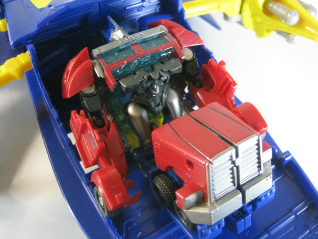コマンダークラスは基本的にコックピットに乗せるのは厳しいですが、オプティマスは画像の様に変形させれば何とかキャノピーを閉じることも出来ました。