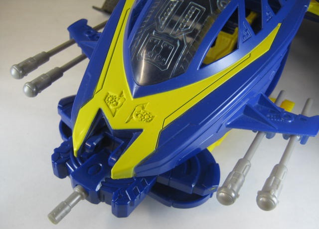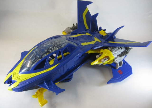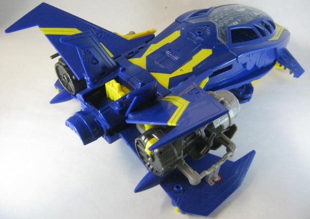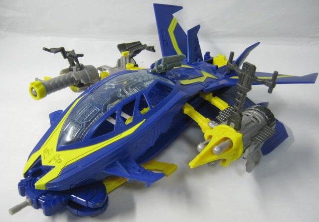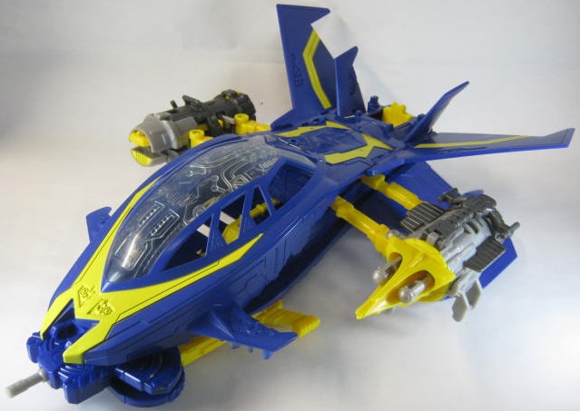 青と黄色の鮮やかな、付属のスモスクと同じカラーの流線型のジェット機。劇中には登場しない玩具オリジナルですが、形状はプライムアニメ本編でドレッドウィングが使用した宇宙船に似ているとか。ビーストハンターズ系で新規のビークルはこのスカイクローだけで、あとはリデコが2つ出ただけと展開は控えめ。