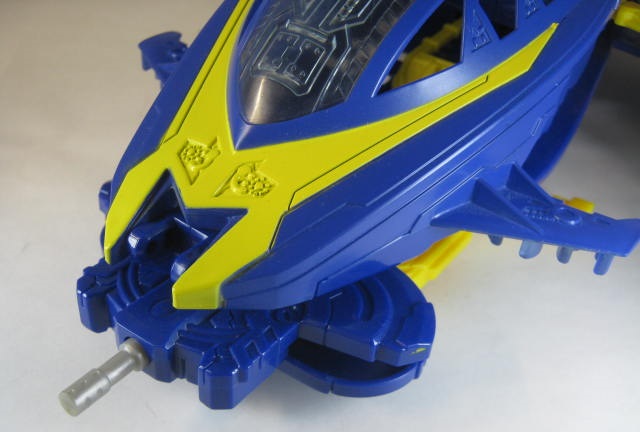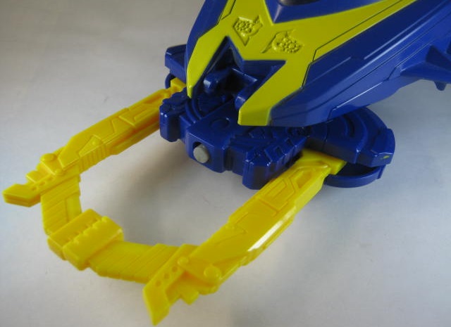機首下のキャプチャークローは先端のグレーのスイッチか裏にあるレバーを引くことで左右から展開!フィギュアを直接スイッチに当てて捕らえる、なんて遊びも出来ます。