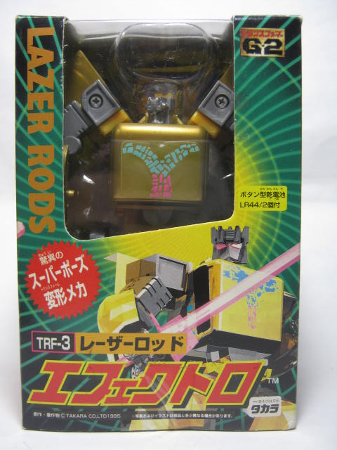 以上、エフェクトロでした!変形が面白く、レーザーロッドの中で唯一、ツインアイの頭部や大きな肩等、ヒロイックな見た目で気に入っているのですが、金プラ故にガシガシ遊ぶことが出来ないというのが惜しいです。