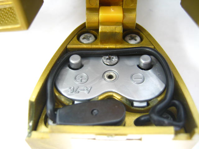 赤く発光!・・・と行きたい所ですが、私が所持しているモノは先述の通り電池の液漏れでやられてしまい、光りません。残念。端子の表面を削れば光るかも知れませんが、破損が怖いのでやっていません。ギミックそのものは死んでいますが、エンジンから伸びるコードが、