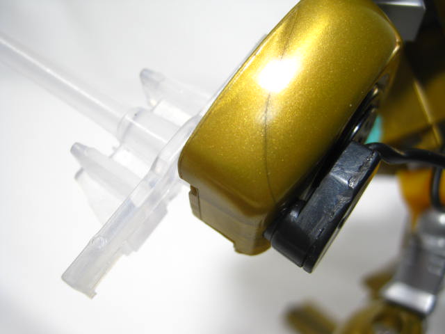 エフェクトロと、どちらも目立つ見た目。腿等に使われている銀色のパーツや腰等の黄色のパーツ、同じ無色透明のクリアパーツ等、色が同じ一部のパーツは同じ金型から同時に作られているのでは無いか?と予想しています。