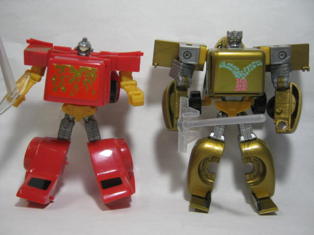 エレクトロンとも。こうしてみるとボットコン版はビークルの天井に模様が無いのが気になりますね。パーツ構成も前部が下半身、後部が上半身のG2版と前部が上半身、後部が下半身と真逆なのも面白い。