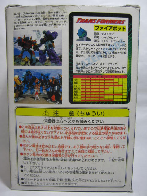 パッケージ裏面の活躍イメージ写真は海外CMからの流用。何気にファイアボット発売時はまだ発売してないドレッドウィングのCMからも流用されています。