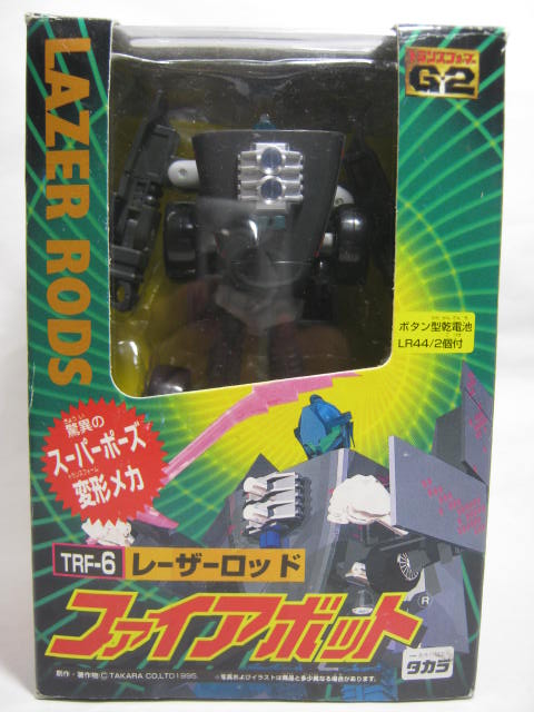 ファイアボットでした。手持ちのレーザーロッドで貴重な発光ギミックが生きてるヤツ。プロポーションも胸の厚みでやや悪く、変形も特別面白みがある訳ではありませんが、黒いボディとダークグリーンの関節や頭部が渋くて好みですね。