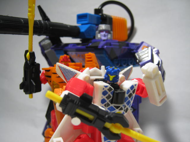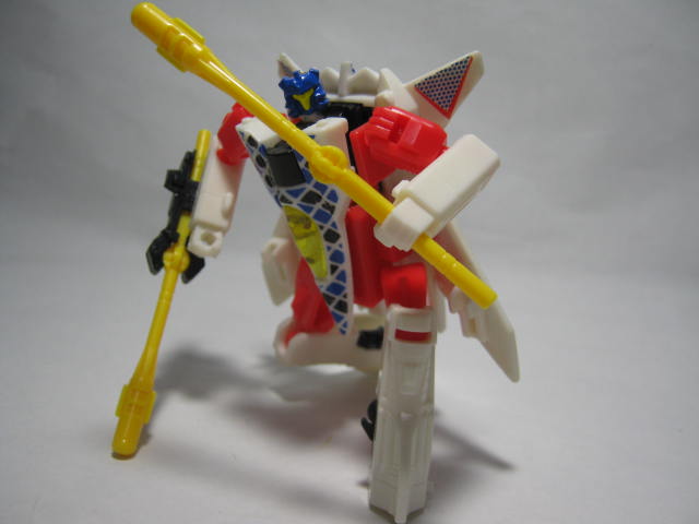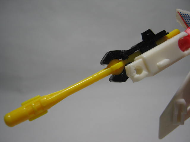ミサイルを武器として持たせる事も可能。後に玩具オリジナルで実写シリーズに登場した時のスペースケースはトライデント状の槍を武器にしていたので槍って事にしたくなる。