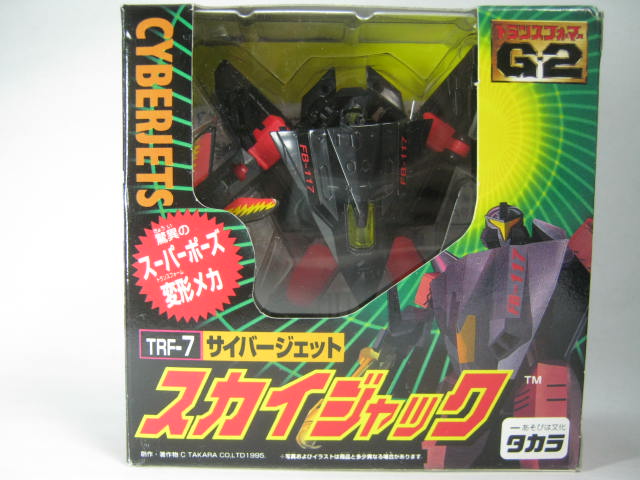 「G2 スカイジャック」でした。デストロンサイバージェット最後の1体。ようやく紹介出来ました。一度は入手するも、シールが無かったと地味にショックな経験がありましたが、漸く完品に出来ました。黒いステルス機にスパイだったりと意外と外見を活かした設定というのも気に入っています。