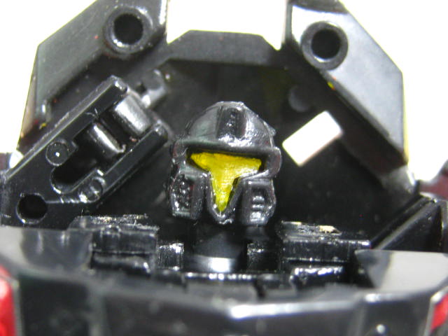 フェイスアップパッケージCGでは角ばった頭部でしたが、玩具では随分と丸みを帯びています。デストロンサイバージェットの中では唯一頭部が塗装されていません。