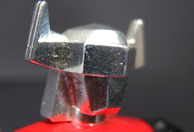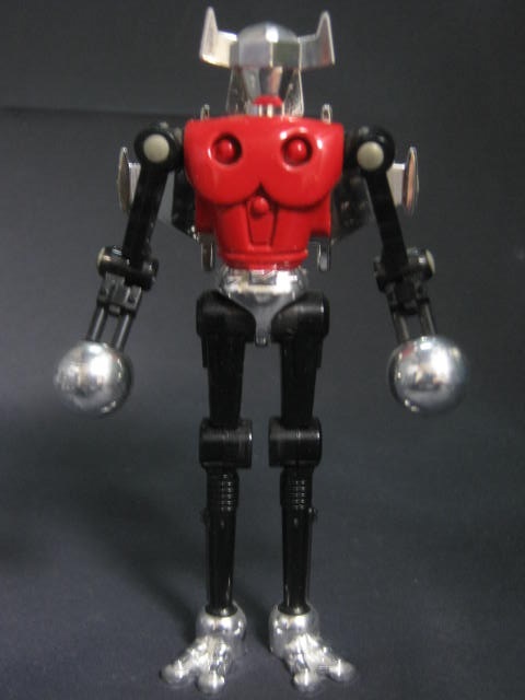 ダイキャスト製の胴体でズシリと重い。各部にメッキを使っている他、判り辛いですが手足はスモークグレーのクリアパーツになっています。先述の通り、胴体がダイキャスト製な上に足が小さいので、不安定でめちゃくちゃ倒れ易い。ただ、手のひらサイズなのにズシリとした満足感があるのは良いですねー。