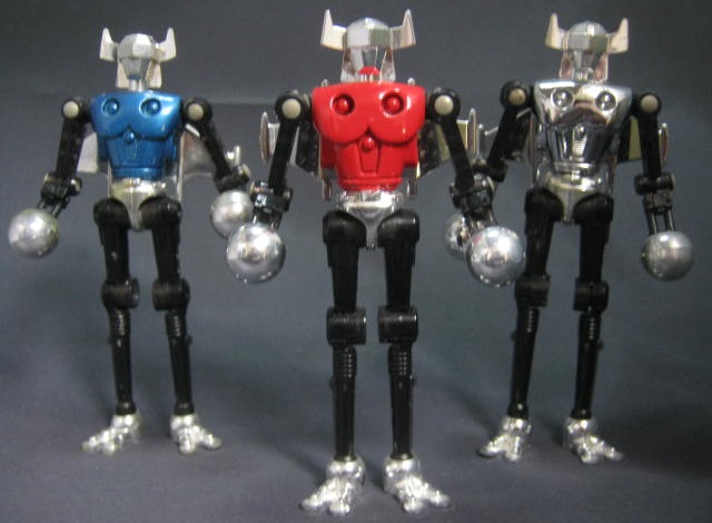 胴体の色が違うだけですが、なんだかレッドスターに比べて他2人はクールそうに見えますね。バリエーションとしては違いが少なすぎて、物足りなさすらあるのですが、3体揃えると統一感があってカッコいい・・・。