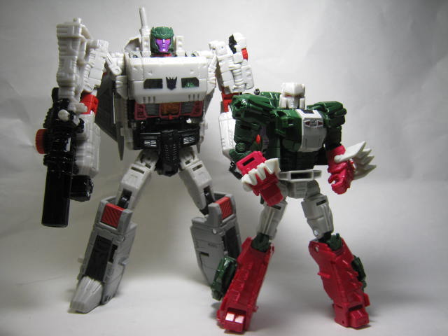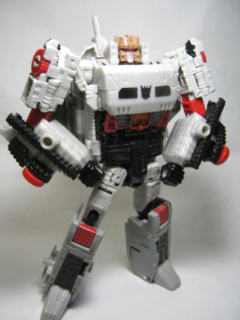 メガトロン。ツイッターでお世話になっているフォロワーのうずまささんに譲って頂きました。オプティマスはG2バトルコンボイをベース、メガトロンはG1をベースにデザインされています。どちらもトリプルチェンジャーになっており、オプティマスはトレーラーと輸送機、メガトロンは戦車と戦闘機に変形。G1系のメガトロンは持っていなかったので嬉しい。空陸押さえているのが良いですね。