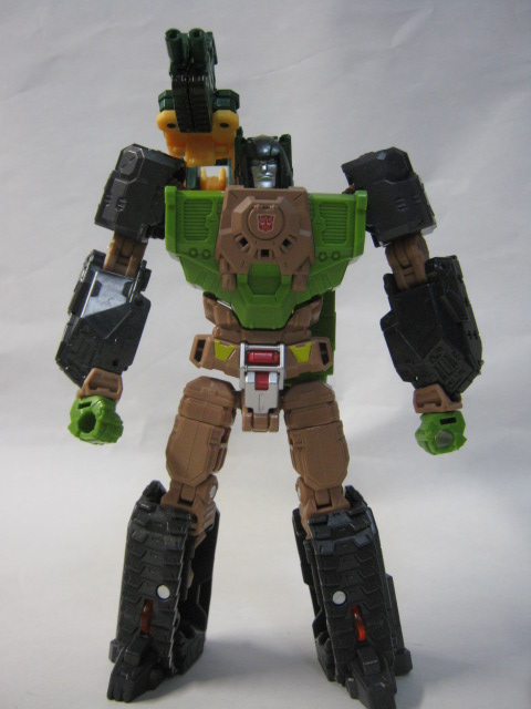ハードヘッド(国内版)にヘッドオン!国内版ハードヘッドの薄茶色の関節などはあまり好みでは無かったのですが、スカイトレッドの色とかなりいい相性!いい意味でモブ臭がしますね。ブローンは普通に似合っていますが、彼は怪力がウリのキャラなので腕っぷしが強そうなボディに合体させたい所。でもミニビークルを肩に装備させるのが気に入っています。