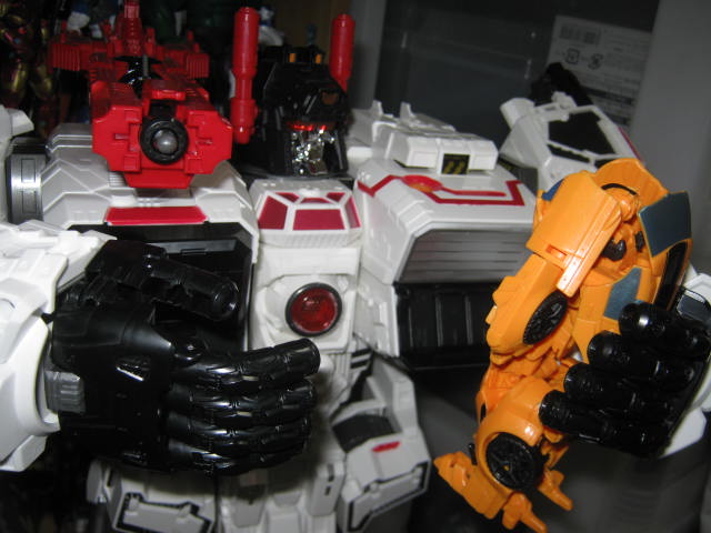 あぶら超人さんから譲って頂きました。ありがとうございます。全長が約60センチある事はわかっていましたが、いざ実物を目の前にすると幅などもあってそのサイズに驚きました。まだ変形させていませんが、ロボットモードで色々な小物を持たせるだけでもう既に楽しいです。あとFOCがやりたくなってくる!
