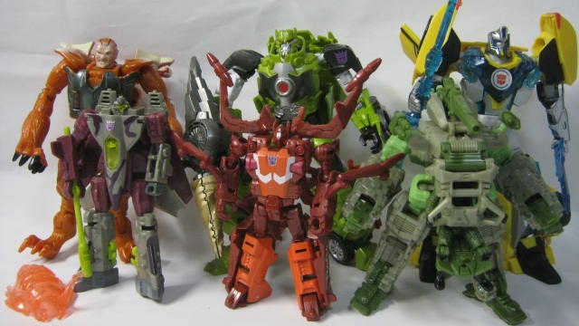 お手頃価格で主要キャラが揃い、簡単な変形で遊び易かったEZコレクションが元々好きで、そこにサイズ差と武器、基地、ビークル遊びを追加したサイバーバース。ますます好きになりましたね。