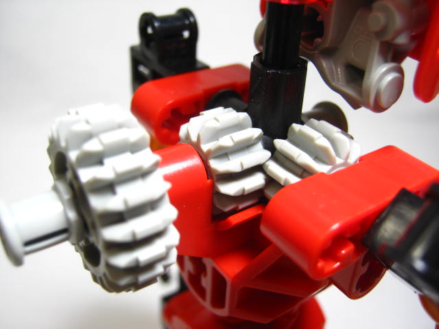 ギミック背中のレバーを回せばギアが連動して右腕が上下にスイング!剣を振り下ろすアクションが楽しめます。この頃はまだ、テクニックシリーズの一部だったのでギアギミックに重点が置かれていました。左肩の付け根は固定されているのでスイングはしません。