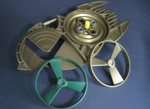 2005年の共通ギミックであるスピナーは盾に付きました。予備の色が違う上にシールド内にストック出来るのが面白い。ただ発射部分には固定できないので2個セットして遊ぶのは難しそう。